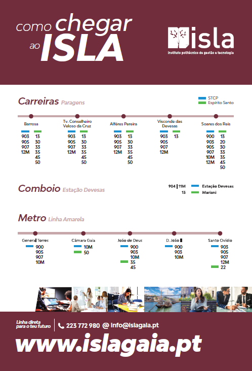 Avisa-se toda a comunidade académica que o ISLA estará encerrado, a partir das 18h do dia 23 de dezembro. A partir do dia 28 de dezembro o ISLA já estará em funcionamento nas novas instalações, na Rua Diogo de Macedo, nº192 | 4400-107 Vila Nova de Gaia