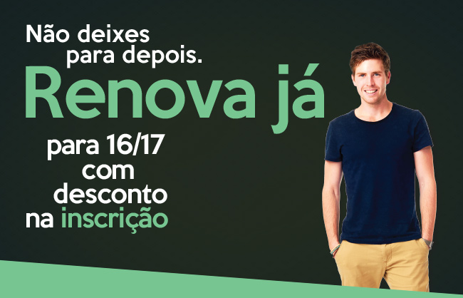 Para alunos em condições de renovar a inscrição para o ano seguinte e com inscrição válida no ano letivo de 15/16.